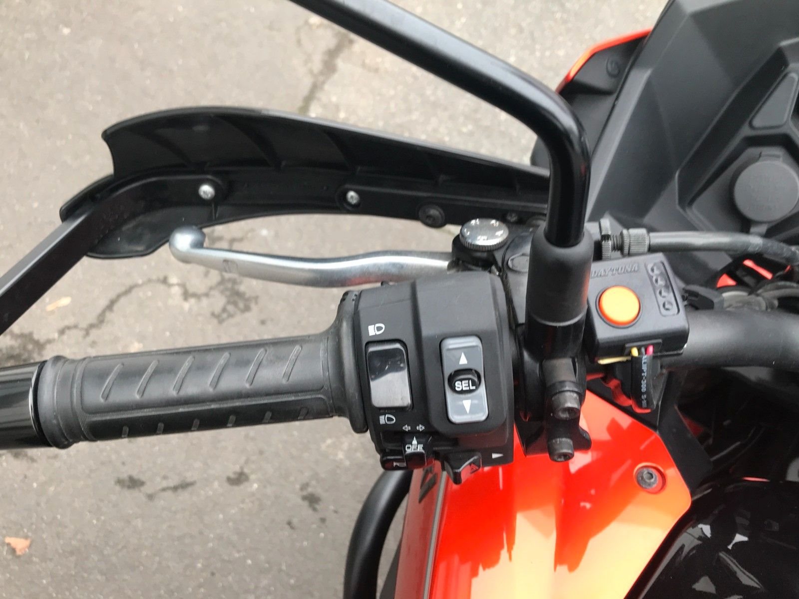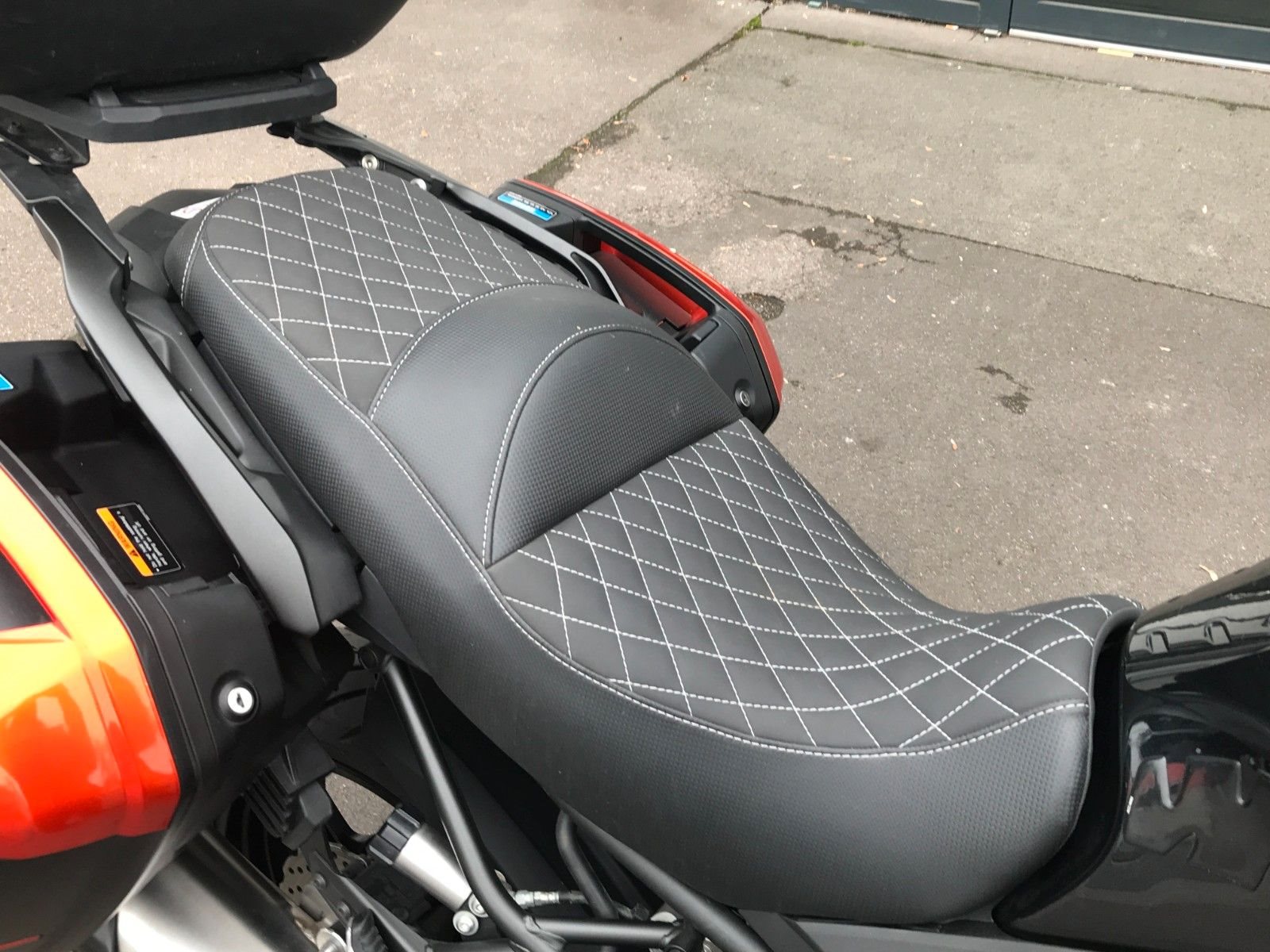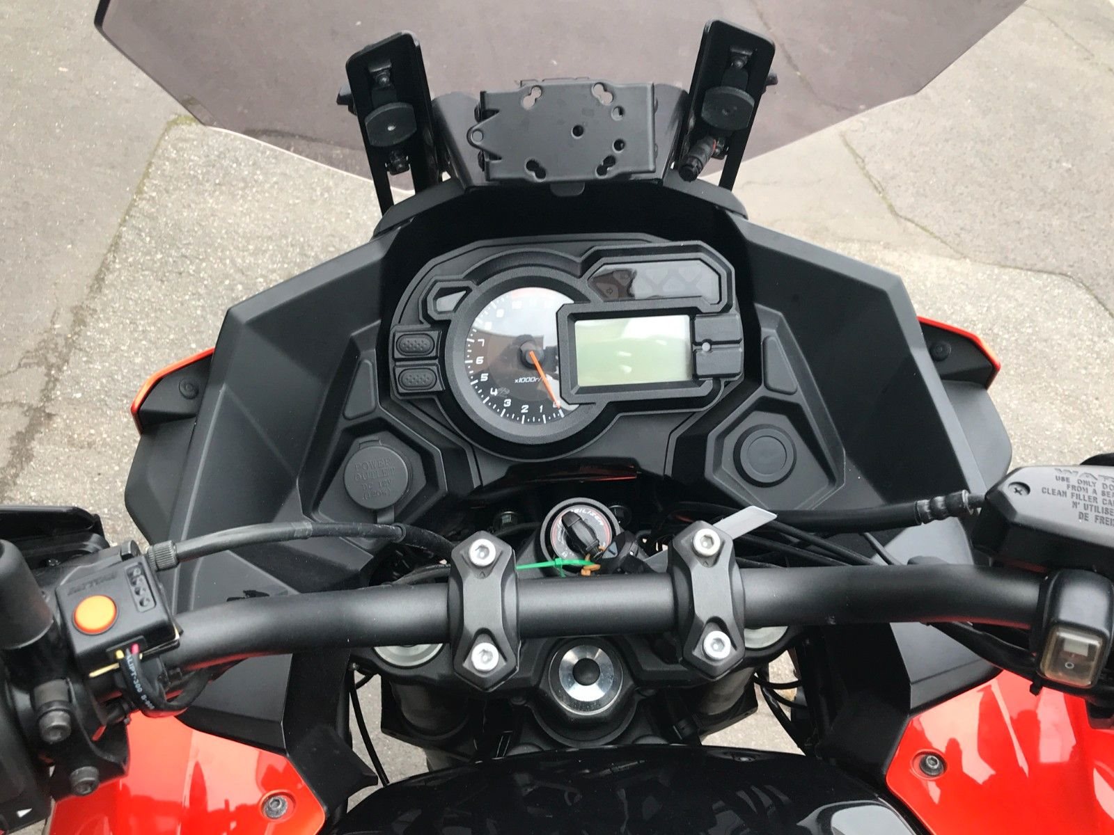 Koffer-Set, Handprotektoren, Ganganzeige, Navihalter, GIVI Topcase, SW-Motec Sturzbügel und Nebelscheinwerfer.