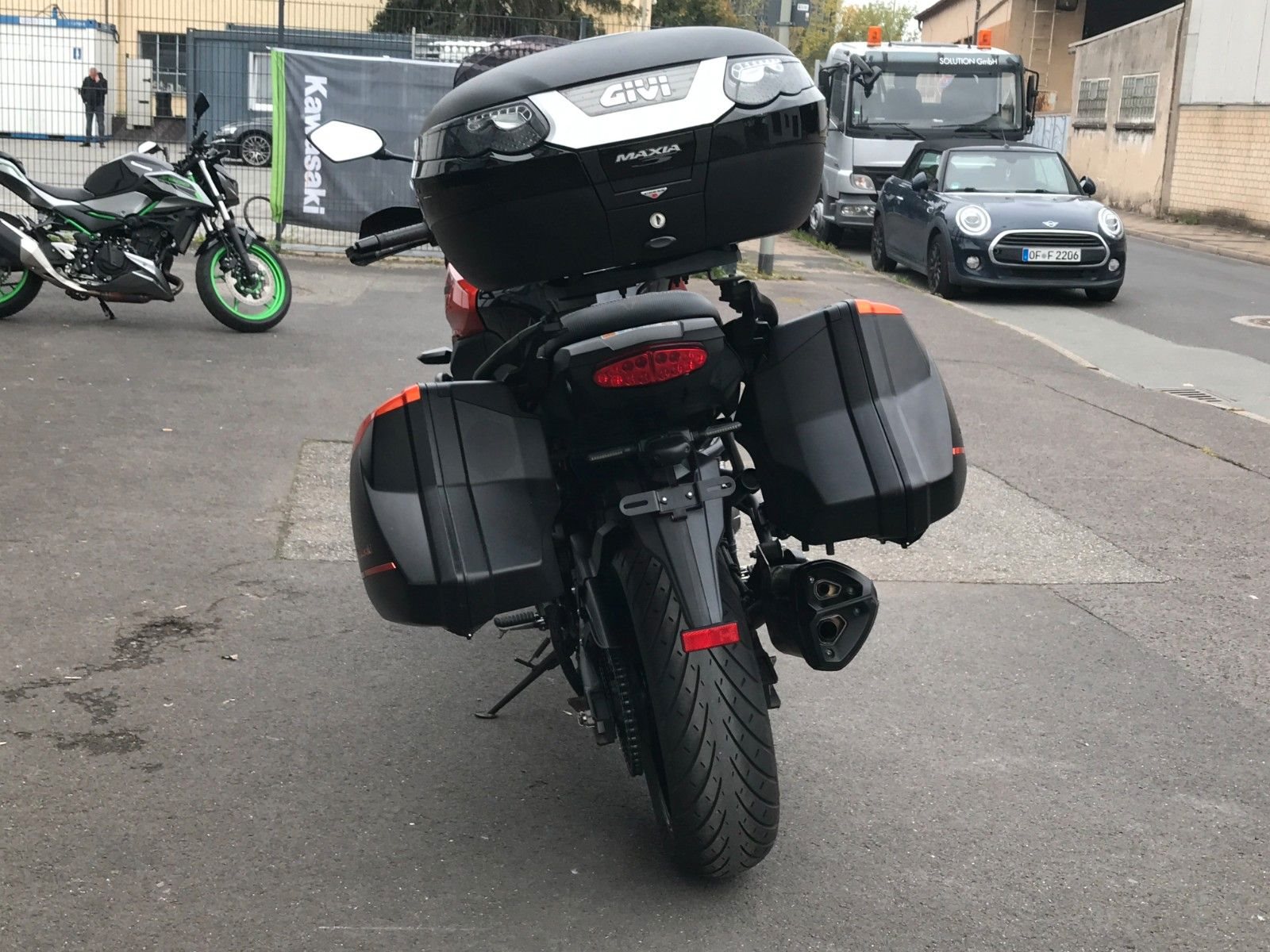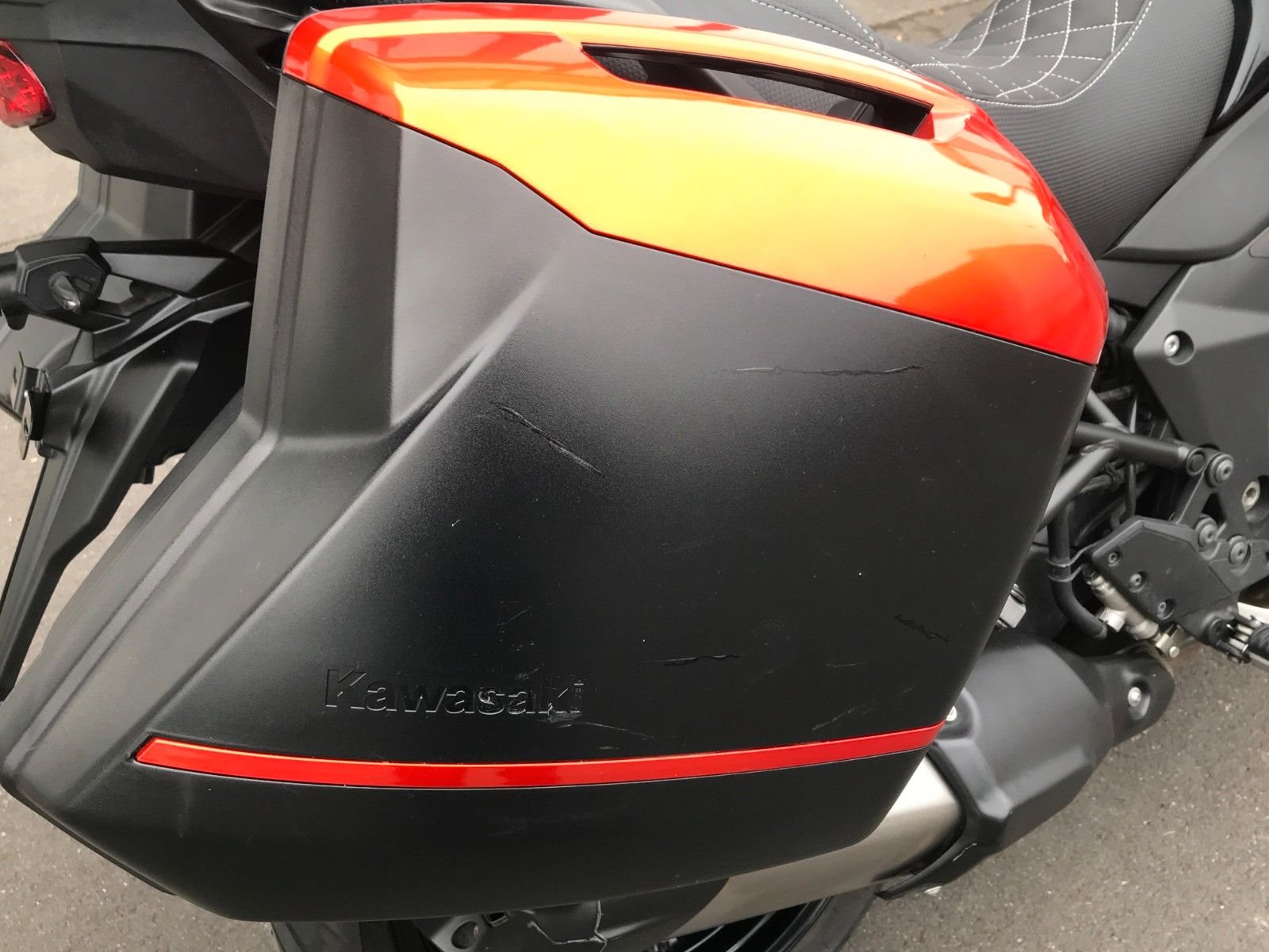 Die Versys war nur bei uns regelmäßig zum Service. Das Motorrad ist um- unfallfrei. Es gibt Gebrausspuren, besonders an den Koffer.