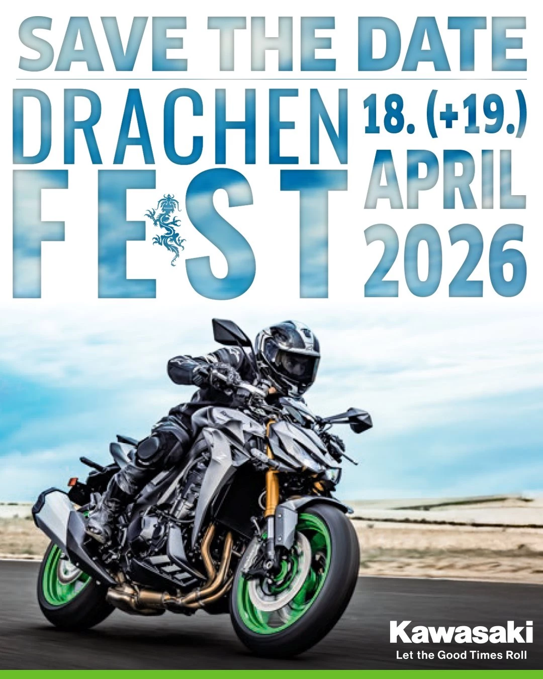 Im April feiern wir als Kawasaki-Vertragspartner das traditionelle Drachenfest. Mit dabei sind die neuen Modelle für 2026 und bekannte Modelle in neuen Farben. Vorbeikommen und mitfeiern!